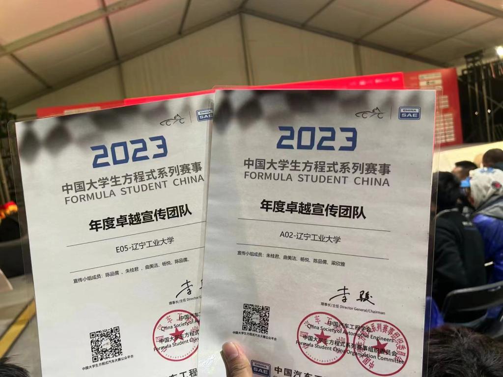 2023年中国老员工电动方程式大赛,获得总成绩第10名,中国老员工电动方程式大赛一等奖,优秀人机安全设计奖,成本准确性优秀奖,年度卓越宣传团队。