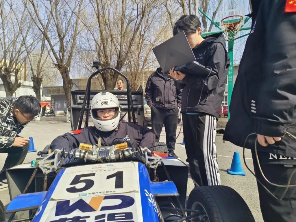 正式开始训练之前,队员们仔细摆放训练桩,反复确认八字环绕场地的准确性,尽最大可能减小误差,认真全面地检查赛车,只为保障车手的安全以及训练的无误、高效率。