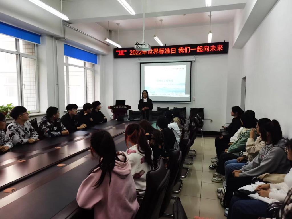 标准化工程专业召开了“2022年世界标准日 一起向未来”主题活动,为同学们解读2022年世界标准日国际祝词和中国祝词,让同学们理解标准化对全球范围内可持续发展的巨大贡献,标准化在数字时代不可替代的的基础作用。在主题活动上,标准化工程专业教研室主任王慧为员工进行了专业导航,带同学们系统认识标准化工程专业,了解专业建设背景、人才培养目标、课程体系与就业前景,鼓励同学们树立目标,努力学习,为标准化事业的发展贡献力量。辽宁省标准化研究院总工程师王丽华、长城汽车标准化主管樊汝湖、中汽中心汽车标准化研究所员工曹冬冬以视频的方式为同学们全方位解读专业,从各自的工作领域出发,对同学们提出专业学习的建议。
