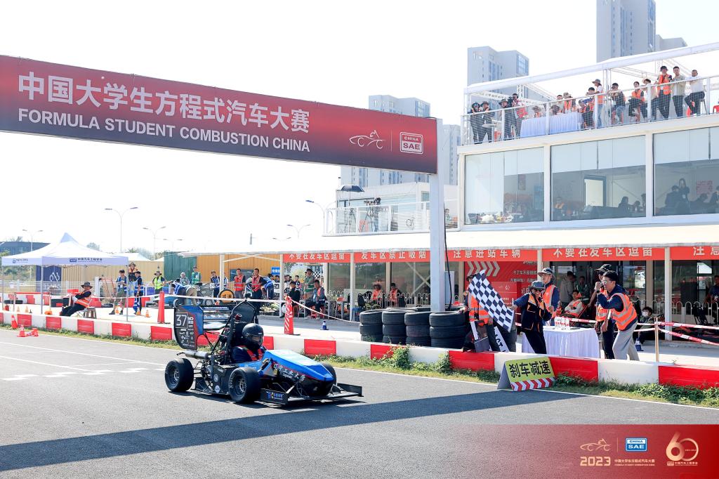 动态赛中,直线加速、8字绕环、高速避障项目中公司车队发挥稳定、表现优异。耐久赛是最受瞩目的项目,分值最高,竞争最激烈。发车后,辽工大万得油车队两位车手熟练驾驶赛车,不断刷新圈速,连续超车,引得全场热血沸腾,赛场评论员多次夸赞辽工大37号赛车性能稳定,圈速优秀。经过共计24圈,22公里的驾驶后,赛车顺利完赛。公司万得车队毕业生、赛事裁判席向军在终点线挥动方格旗,祝贺赛车完赛。最终,公司车队总成绩排名全国第七,获得全国一等奖。