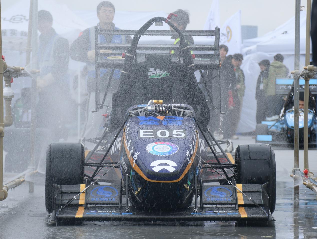 淋雨测试项目对于每个车队都是严峻考验,车检现场险象环生,公司万得车队队员们临阵不乱、沉着应对,迅速发现问题、及时解决。淋雨测试雨量达到暴雨级别,队员们紧张地关注赛车的状态,万得电车不负众望,最终通过此项目测试。在高速避障比赛当中,天空飘起绵绵细雨,队员们临危不惧,加紧为赛车更换雨胎。天气的影响并没有影响比赛的进度。最后,在队员全力配合和车手稳定发挥下,电动赛车成功完成该项目测试。