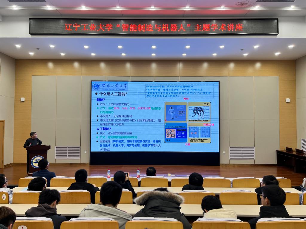 刘伟军在讲座中介绍了人工智能在智能制造、机器人技术中的应用,结合自己科研团队在选题、课题研究、科技成果转化方面的应用案例进行讲解。讲座内容深入浅出,详实丰富,互动环节中刘伟军就现场师生提出的问题进行了详细的解答。刘伟军教授长期从事激光制造与智能制造领域的基础理论研究、关键技术攻关、装备研制与示范推广,牵头创建了辽宁省激光表面工程技术重点实验室、辽宁省复杂曲面数控制造技术与装备工程研究中心并担任负责人。现任中国计量测试学会在线监测及智能制造专业委员会副主任委员,辽宁省机械工程学会自动化分会副理事长。